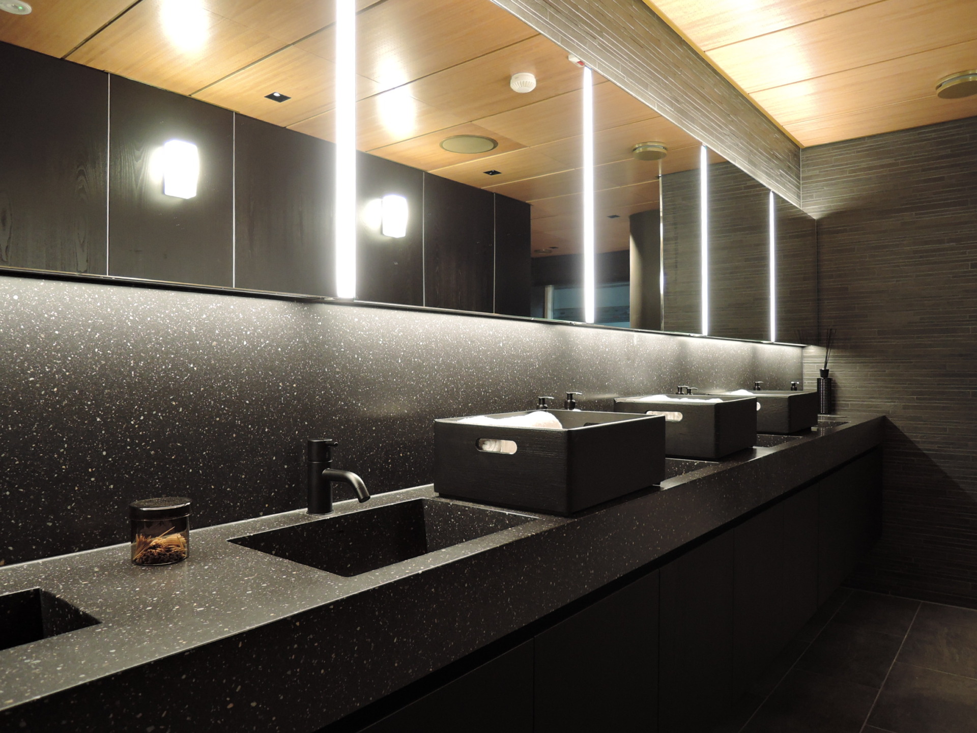Composite materials consist of natural minerals and high technology acrylic resin mixed into a mass that can be produced in numerous colour tones. The natural minerals give the material hardness and durability. The material is dense and does not absorb moisture or dust.