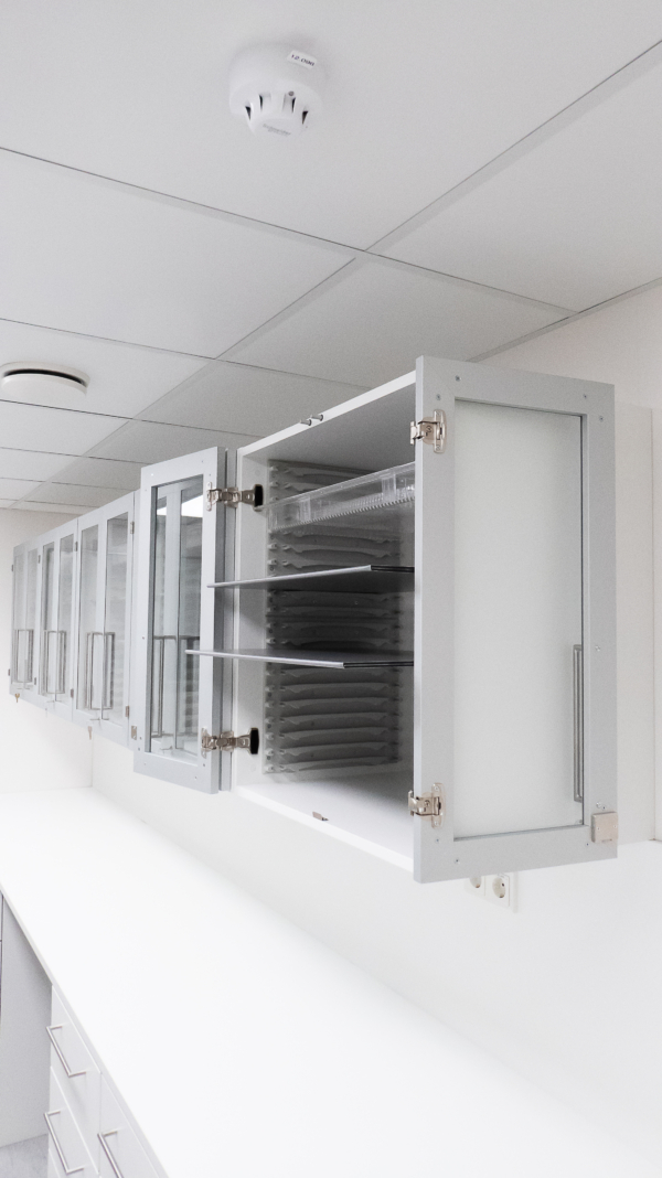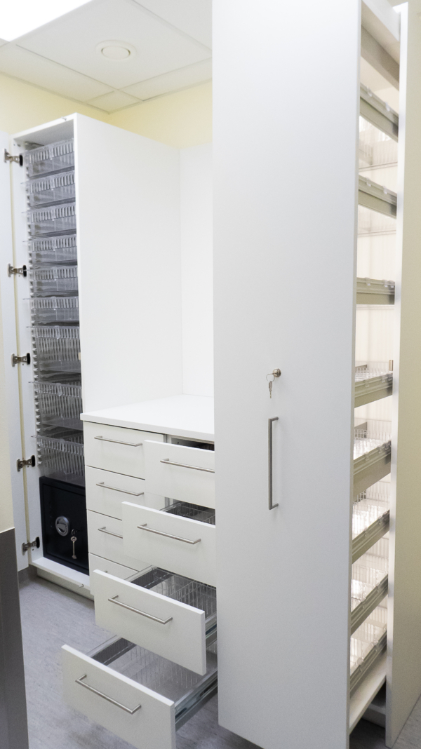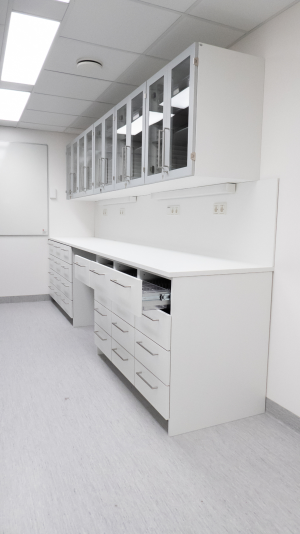 Lääkekaapit ym. erikoiskalusteet Terveyskeskukseen sekä Hematologian, Sätehoidon, Ortopedian osastoille ja Hiiun Sairaalaan.
