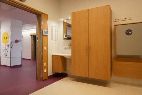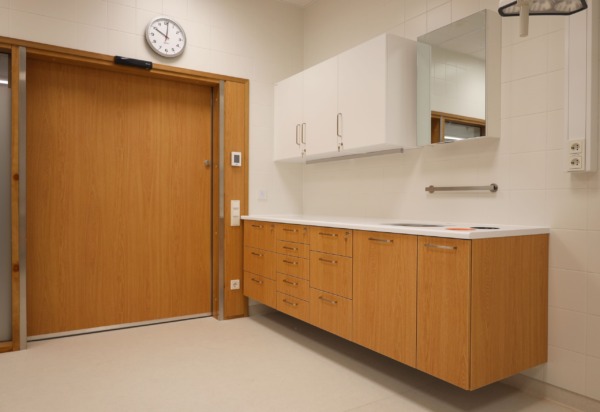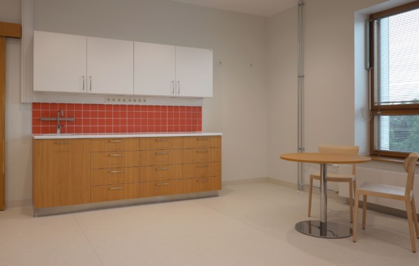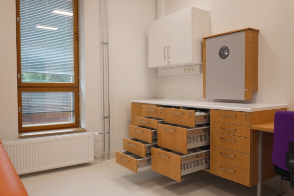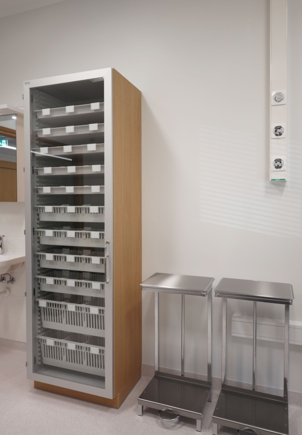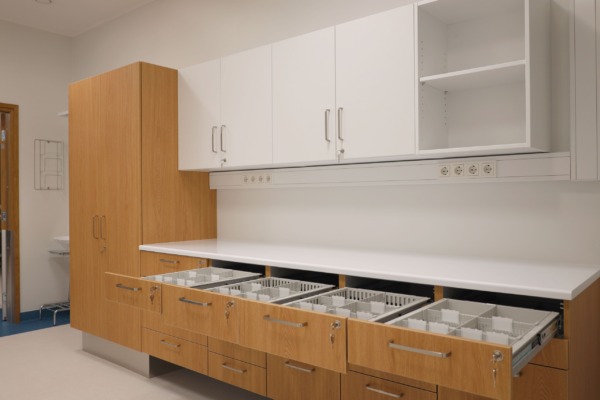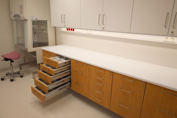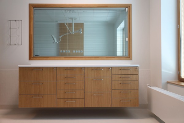 Erikoiskalusteet, lääkekaapit ja hyllyt Tarton Yliopistollisen sairaalan. C, M ja G1 siipi. Tartu, Viro.