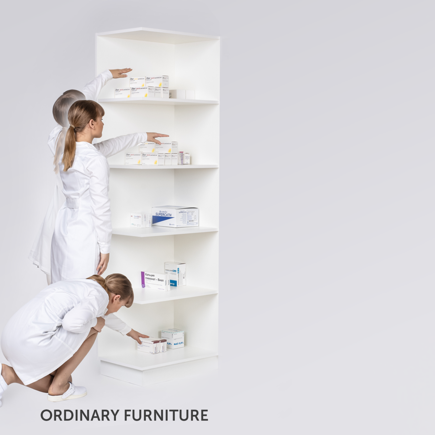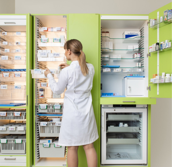 Merianto Medical hospital furniture is ergonomic and space-saving, helping to create a logistical whole and ensuring the security of medicinal products.