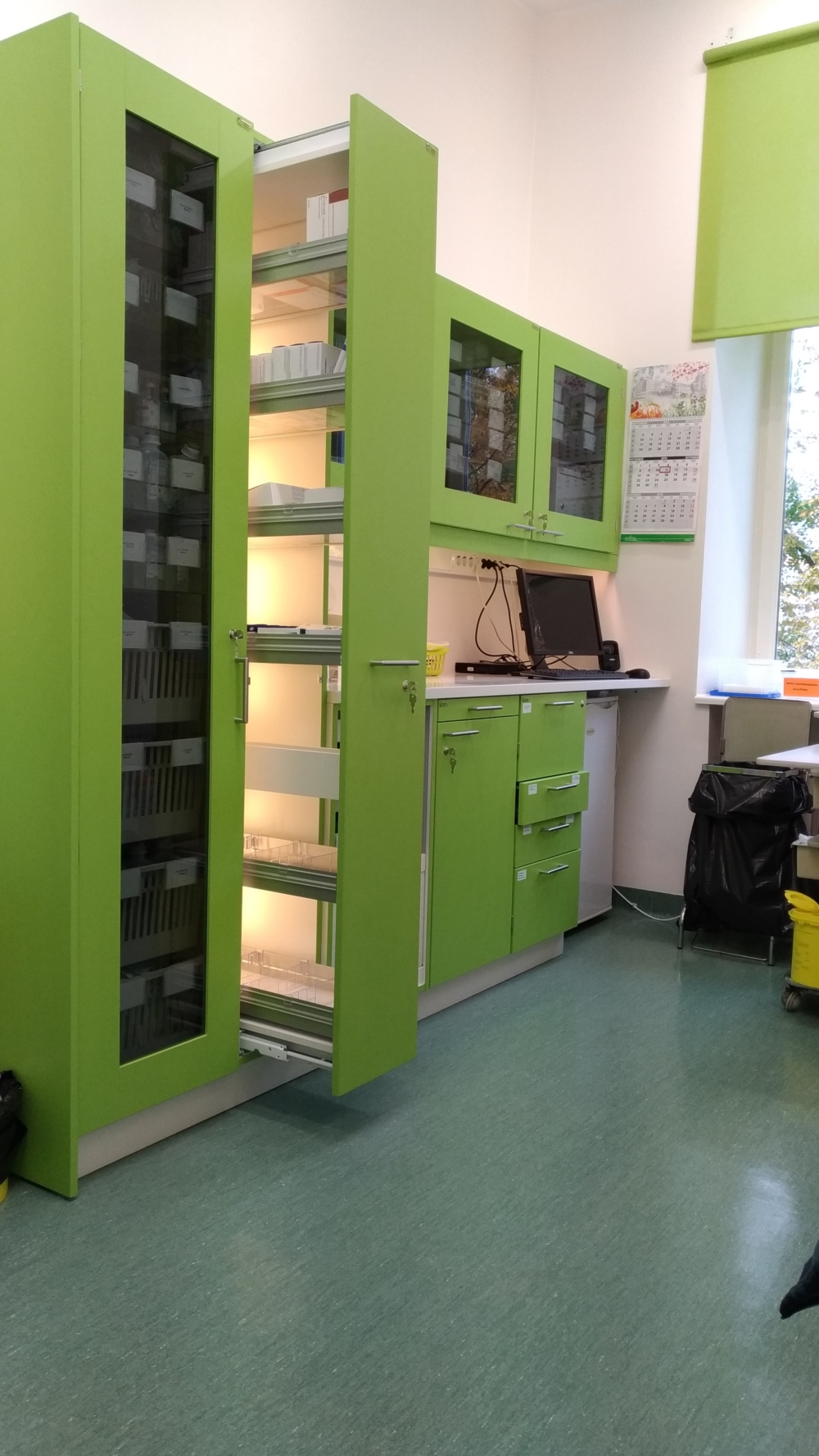 Kõrge ravimikapp MK, Cargokapp M-LC, seinakapid MY, alumised kapid MA.