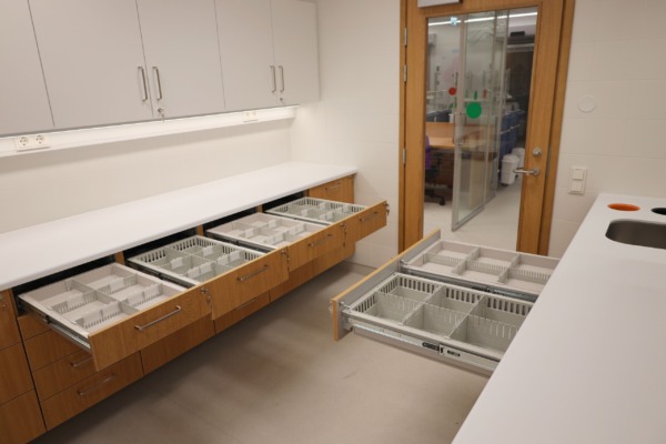 Ravimikapid, erimööbel ja riiulid TÜ Kliinikumi C, M ja G1 korpustesse.
